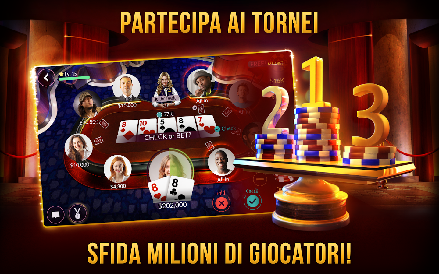 Zynga poker oynamak istediğiniz zaman sistemin sizi otomatik şekilde atayabileceği bir masaya gidebilir veya oyunun turnuva modunu da tercih edebilirsiniz. Collect free zynga poker chips instantly without having to search around for. Play for fun with your friends or compete against millions of users every day. Play as long as you want, no more limitations of battery, mobile data and disturbing calls. If you're a fan of the vegas casino experience download zynga poker and start playing today for free!